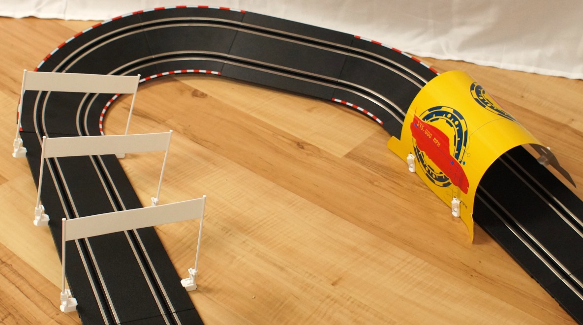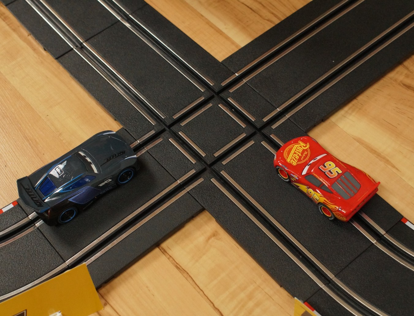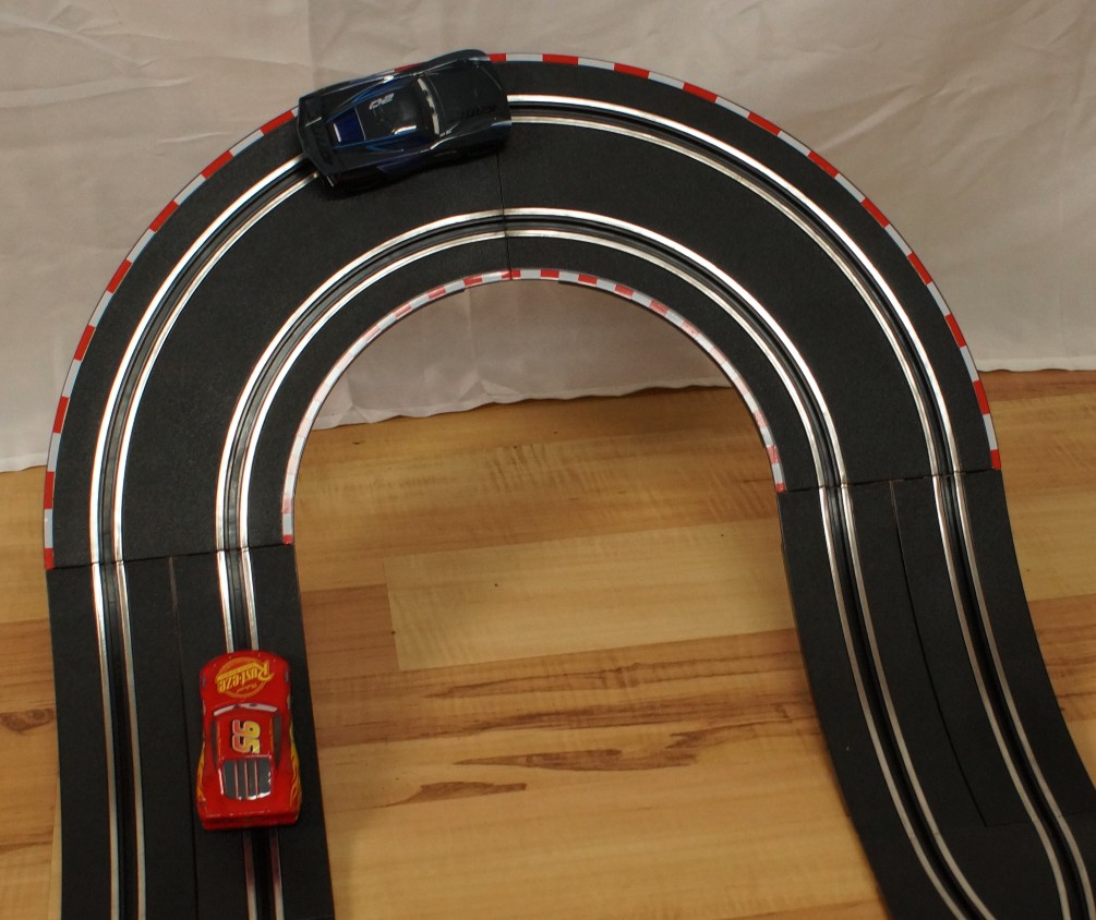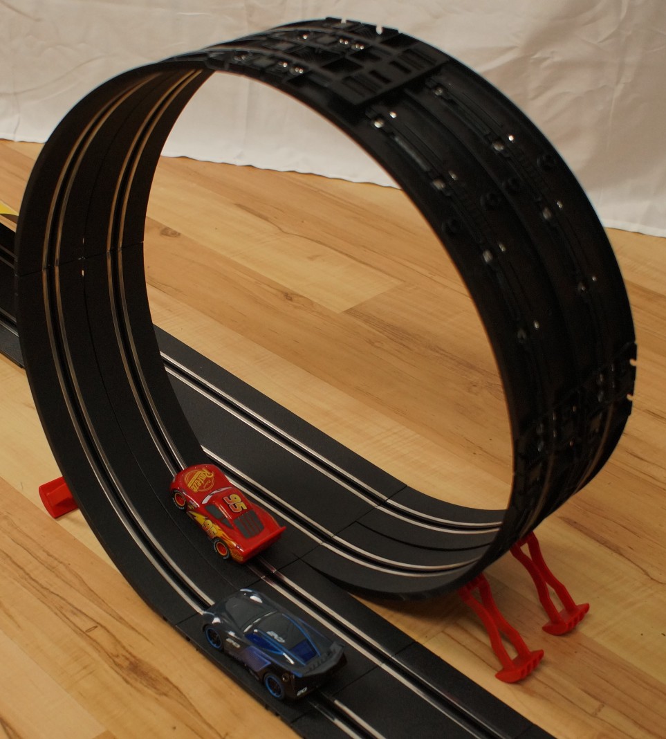 Coole Action-Rennbahn im Maßstab 1:43 mit originalgetreuen Fahrzeugen im Maßstab 1:43. Der Handregler kommt mit einem speziellen-Turbo Button – ein Druck und du erhältst einen Boost für noch mehr Geschwindigkeit.